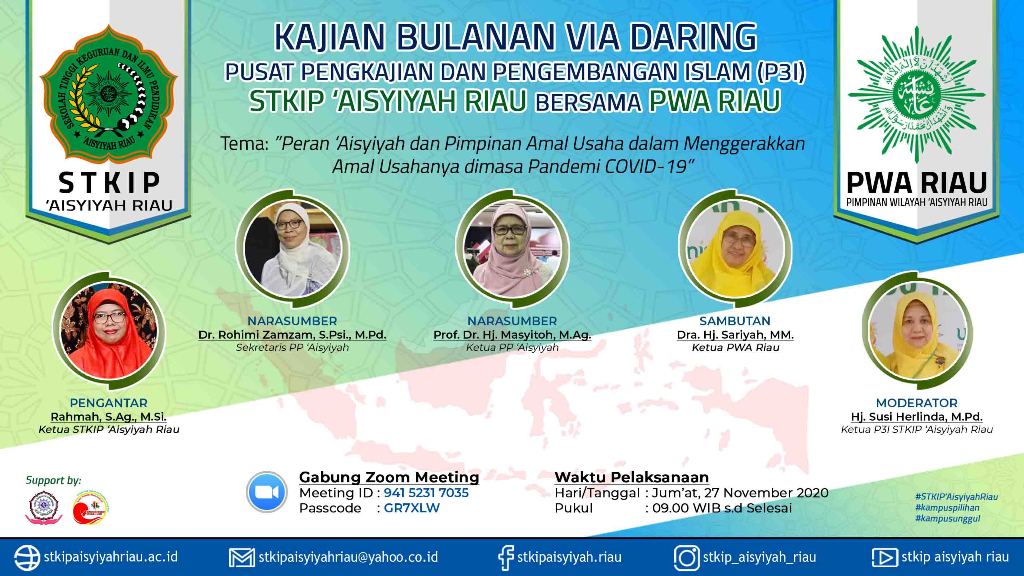 P3I STKIP ‘Aisyiyah Riau, mengundang seluruh civitas akademik dan seluruh mahasiswa STKIP ‘Aisyiyah Riau, warga persyarikatan, serta masyarakat umum dalam acara Kajian Bulanan P3I STKIP ‘Aisyiyah Riau via Daring.