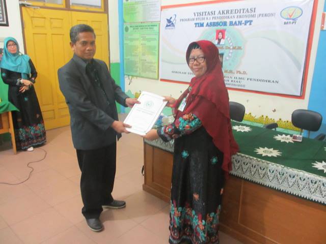 STKIP ‘AISYIYAH RIAU, Pekanbaru (31/10/2018). Program Studi S-1 Pendidikan Ekonomi (PEKON) Sekolah Tinggi Keguruan Ilmu Pendidikan (STKIP) ‘Aisyiyah Riau meraih akreditasi “B” pada proses re-akreditasi yang dilakukan oleh Badan Akreditasi Nasional Perguruan Tinggi (BAN-PT). Re-akreditasi ini adalah yang kedua dilakukan sejak program studi ini berdiri dan merupakan capaian yang membuktikan bahwa program studi S-1 PEKON telah memenuhi standar penilaian yang ditetapkan oleh BAN-PT dalam penyelenggaraan Tri dharma Perguruan Tinggi di tingkat program studi.